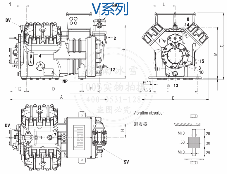 批發零售Frascold/富士豪半封閉活塞壓縮機V15-71Y,額定功率15HP,最大功耗11.0Kw,意大利原裝進口,假一罰十。